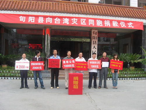8月8日,台湾“莫拉克”台风灾害发生后,旬阳县365bet官网首页_365被限制如何解决_Best365官网登录会同旬阳县人民政府台湾事务办公室、民政局、教育局、慈善协会等联合发起倡仪,积极组织社会各界人士向台湾灾区捐款。9月2日,在县政府大院举行的捐款仪式上,除县直机关事业单位外,14家365bet官网首页_365被限制如何解决_Best365官网登录会员企业现场向台湾灾区捐款2.8万元,向台湾灾区奉献了一份爱心。(潘杰)